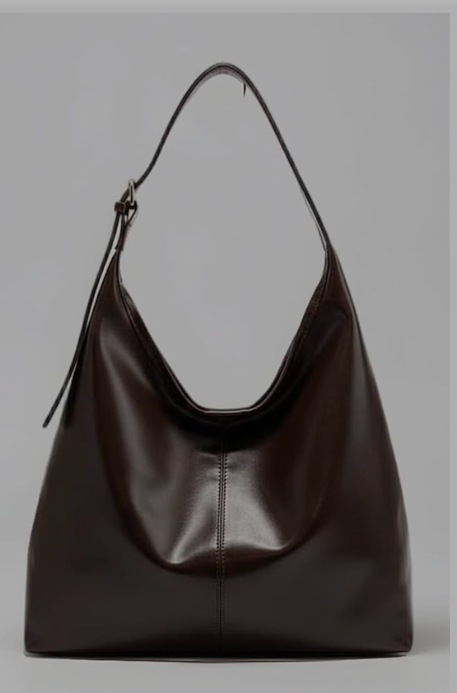 A versatile dark brown hobo bag that combines chic design with ample space, offering both comfort and style.