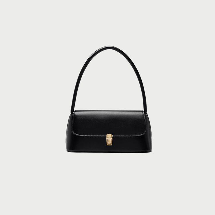A stylish black leather hobo bag with a luxurious, smooth finish and gold accents. Its sleek silhouette makes it ideal for everyday use.
